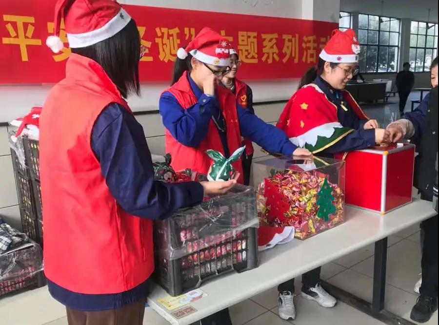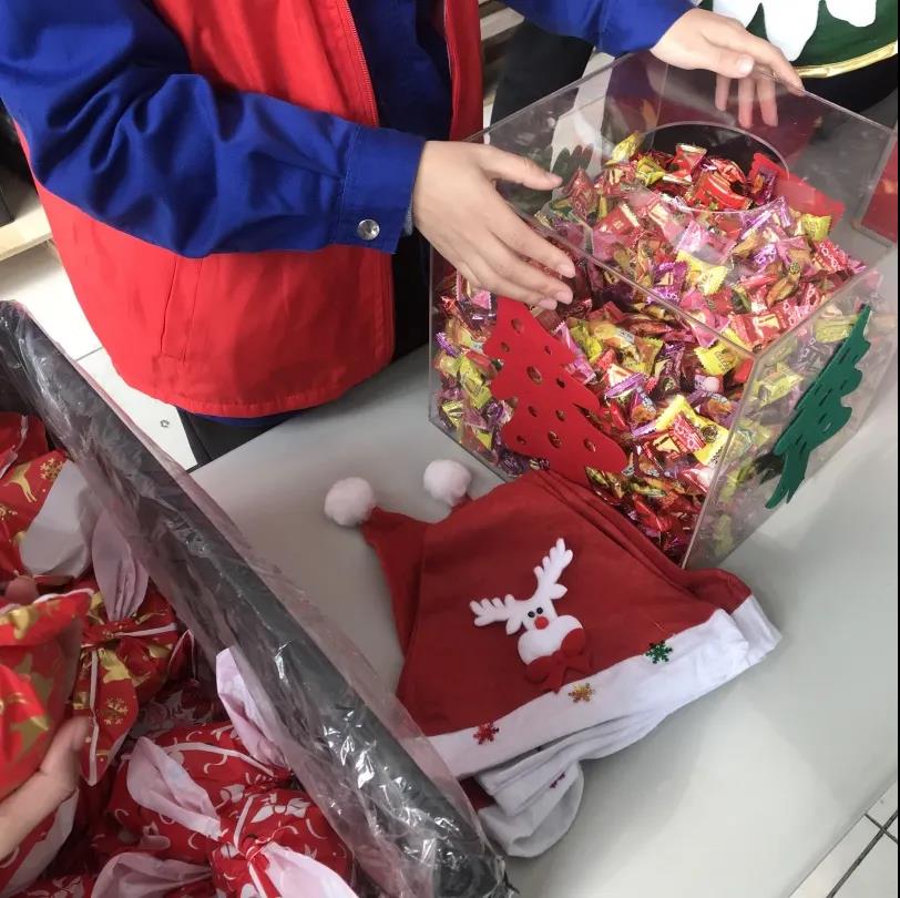 中午在员工餐厅内,,,,,抽奖箱内“平安夜快乐”、“圣诞快乐”、“糖果甜一甜”三种差别的抽奖券划分是平安果、糖果以及圣诞帽三种奖品。。。。。。。