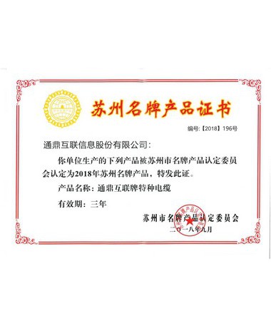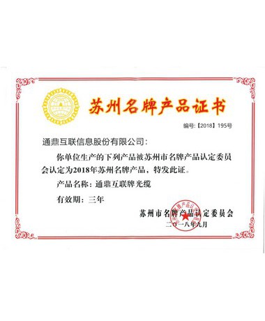 2018年苏州市名牌产品(光缆)
