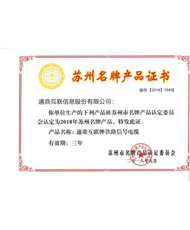 2018年苏州市名牌产品(铁路信号电缆)