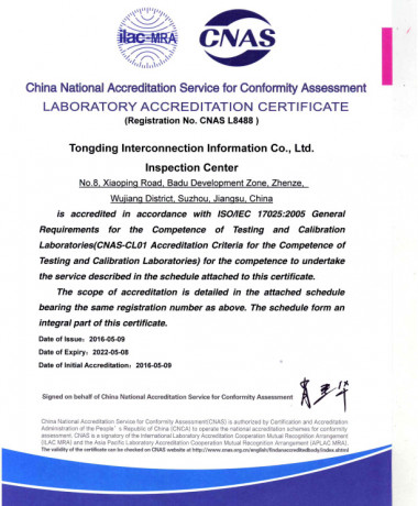 CNAS Certification 2016